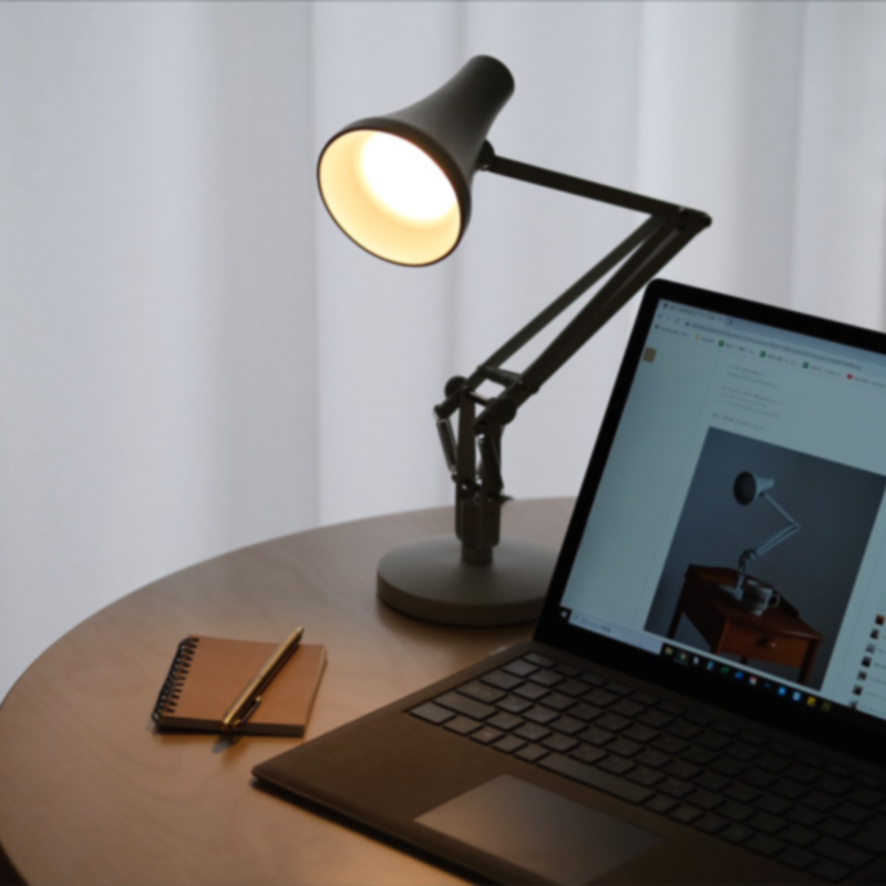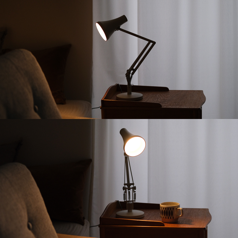 そんな中、「ANGLEPOISE 90 MINI MINI」はスタイリッシュで、ただ置いているだけで絵になる佇まい。