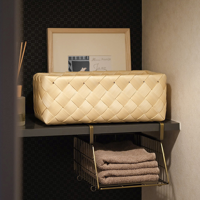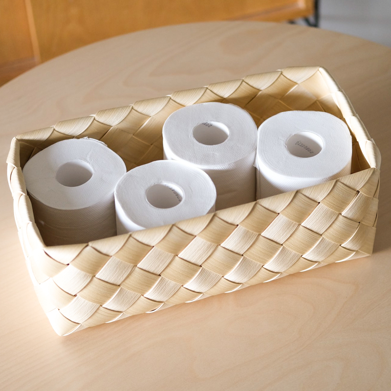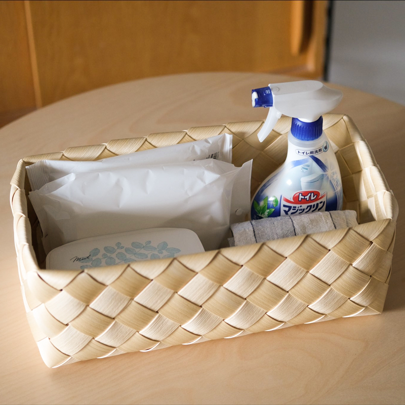 トイレの棚は奥行きが浅くてなかなかしっくりくる物がなかったのですが、レクタングルのMサイズがぴったりでした。
